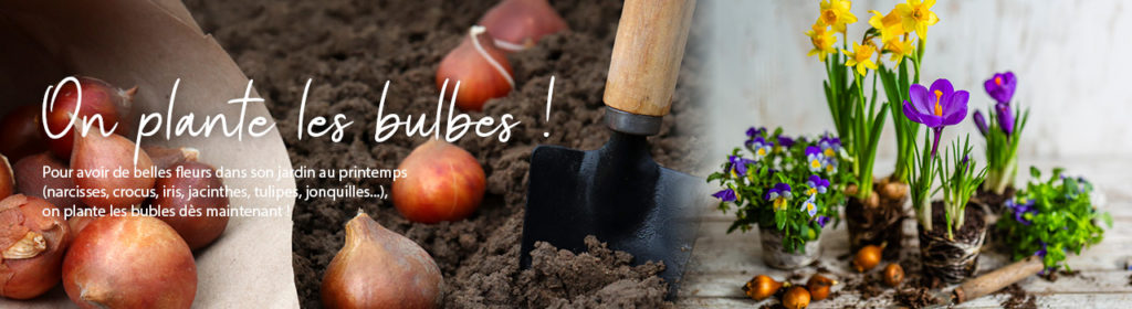 C’est en septembre et octobre que l’on met les bulbes de narcisses, de tulipes, de jonquilles et autres crocus afin qu’ils puissent s’enraciner avant le début de l’hiver. Vos bulbes fleuriront au printemps à partir du mois de mars.