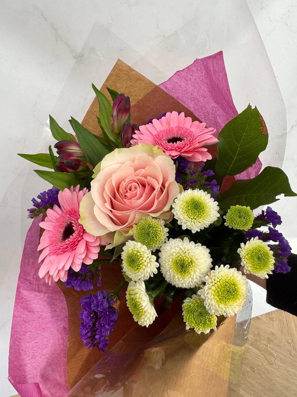 Bouquet de rose, germini et santini 4/5 tiges