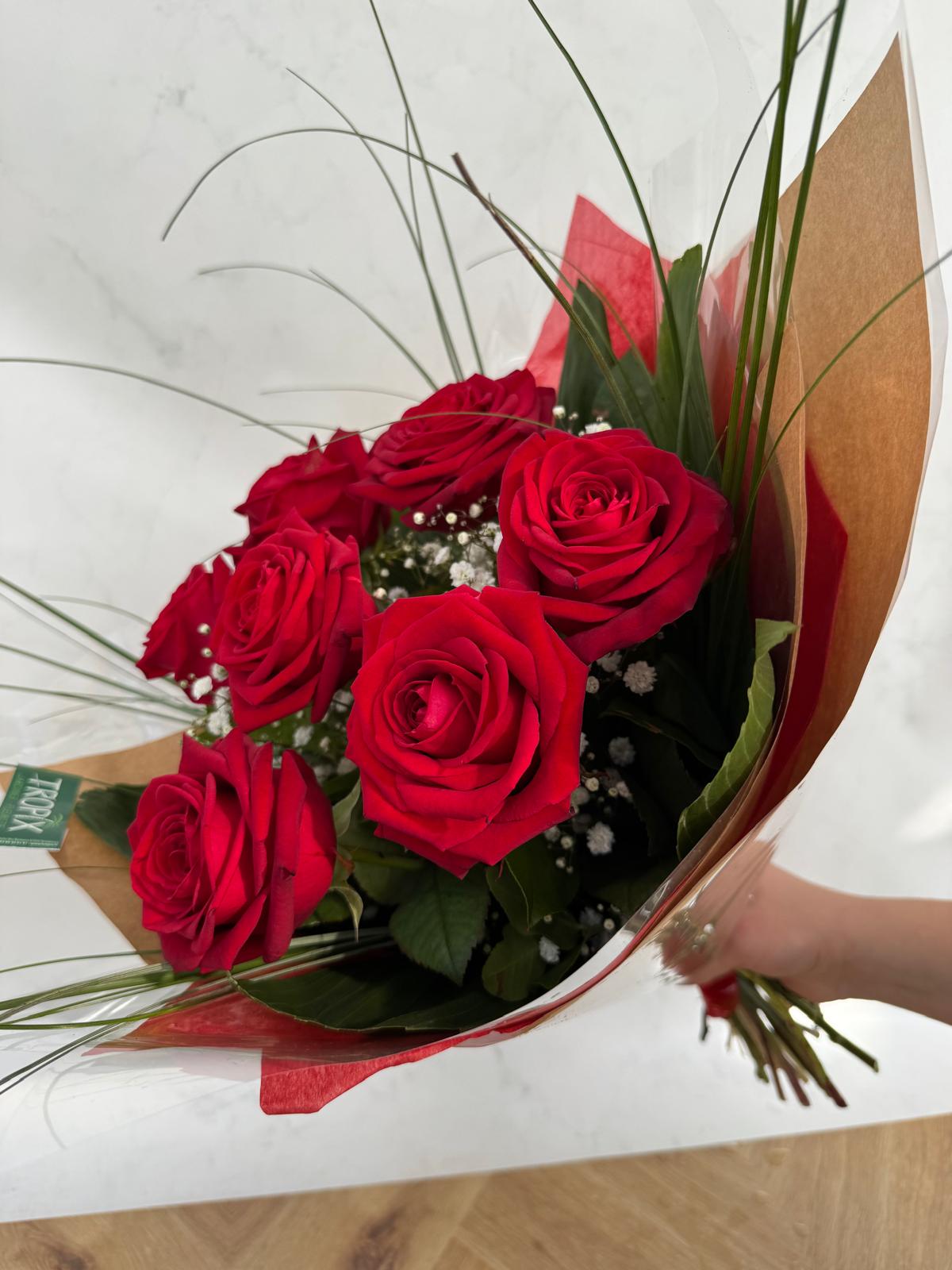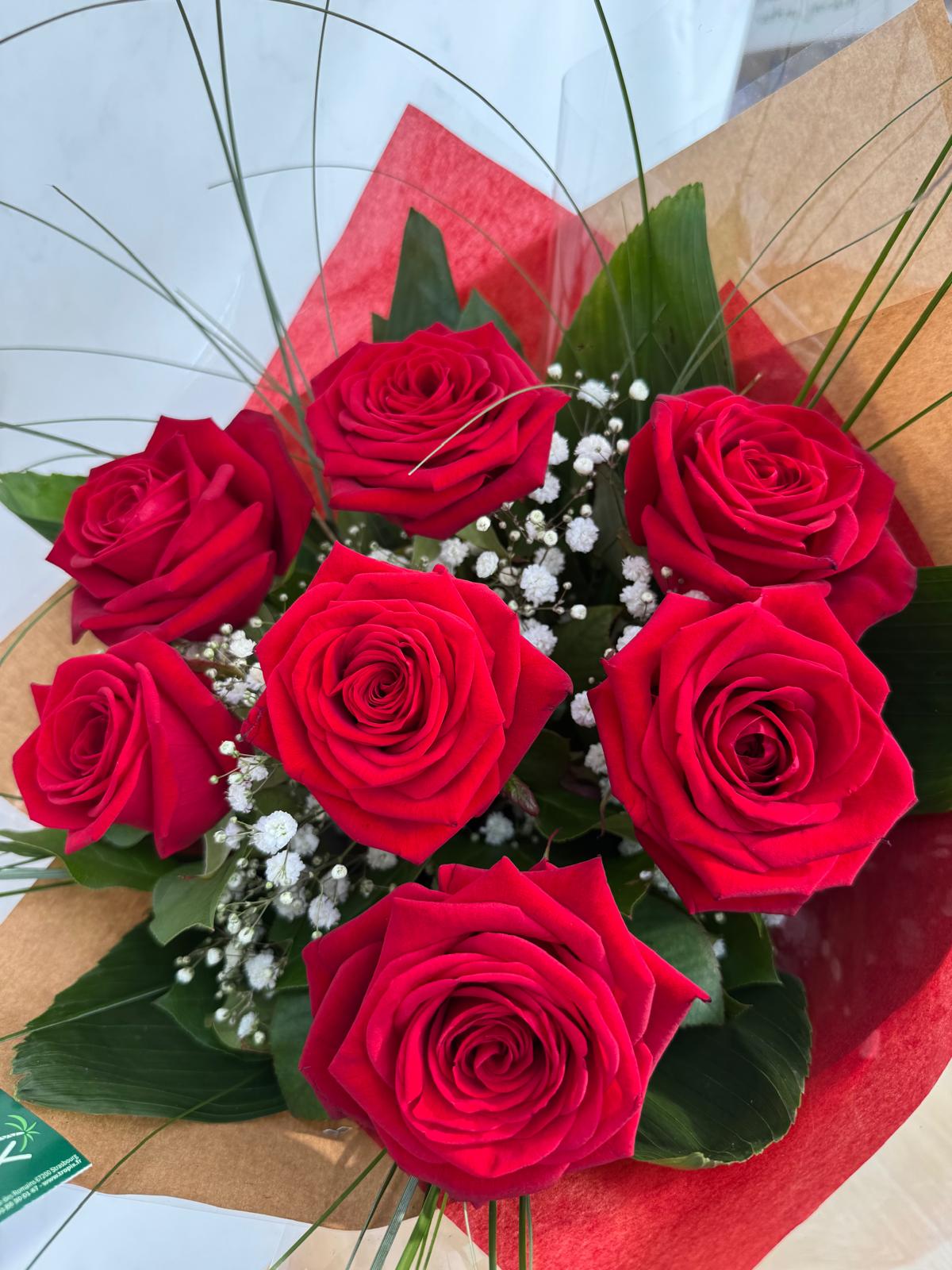 Bouquet « Roses rouges& gypsophile »